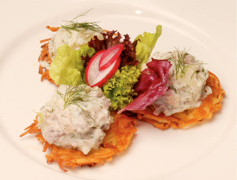 Matjes hausfrauenart auf Holsteiner Kartoffelpuffer |