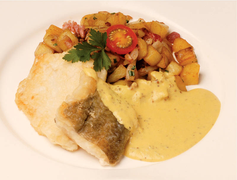 Zander und Dorsch aus der Ostsee mit Senfsauce auf Kartoffel-Schwenk |