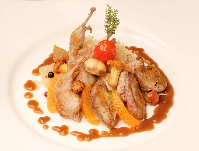 Brust und Schlegel von der Wachteln auf Rieslingskraut und Kartoffelschnee |