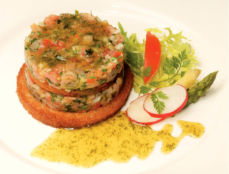 Lachstatar auf Rösttaler mit Senf-Honig-Soße |