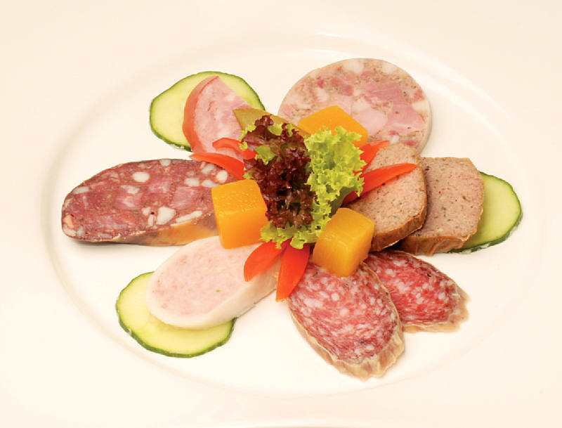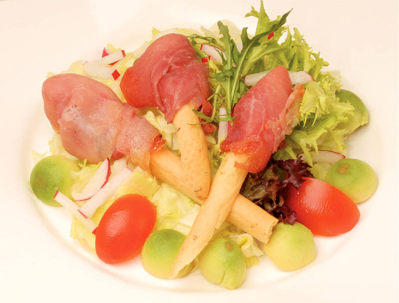 Katenschinken von der Spitze an Gebäckstangen mit Salat |