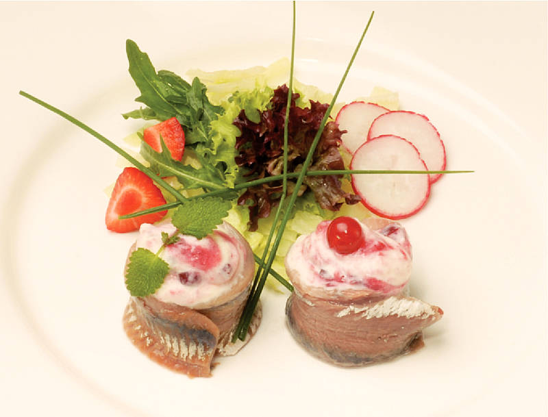 Matjesröllchen mit Preiselbeerrahm |