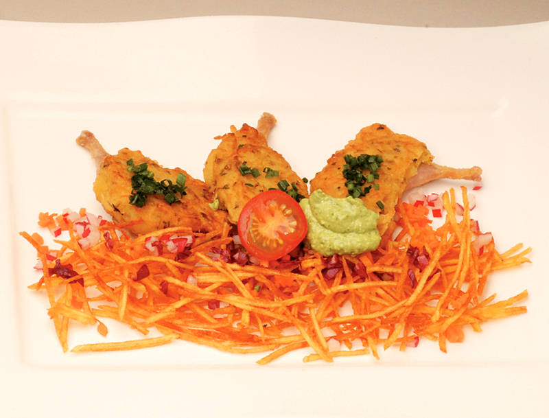 Wachtelbrust auf Tomatengemüse mit Feldsalat |